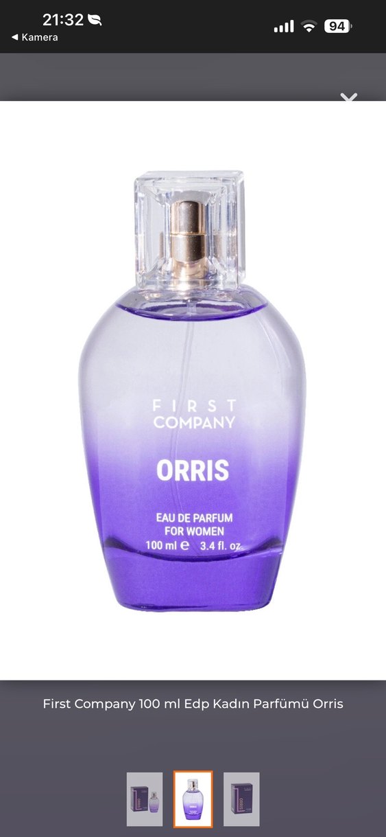 First Company Orris kadın parfümü, 100 ml mor degrade şişede, kalıcı koku deneyimi sunar.