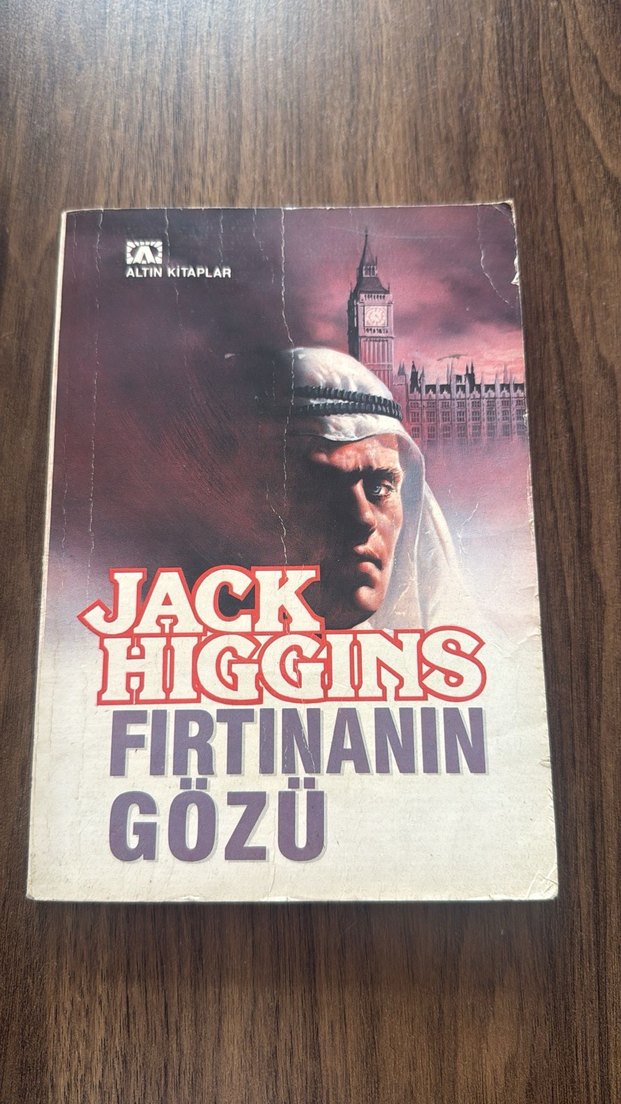 Jack Higgins'in "Fırtınanın Gözü" adlı romanı, gerilim ve entrika dolu bir hikaye sunuyor. Kapakta geleneksel kıyafetli bir adam ve Big Ben yer alıyor.