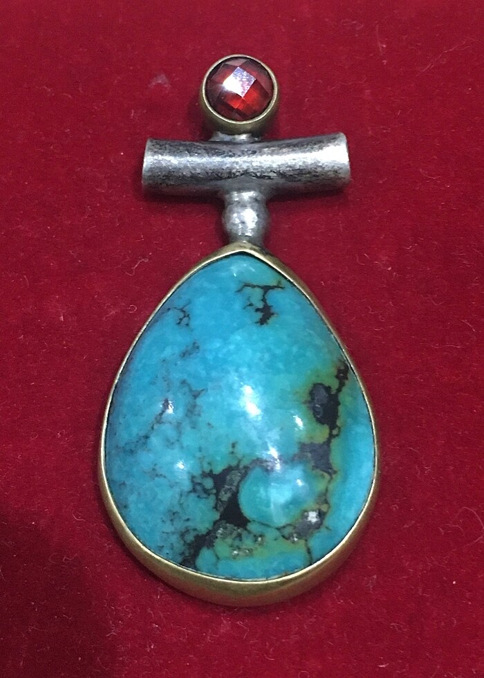 Gümüş 925 ayar Firuze/Turkuaz Garnet/Lal/Granat taşlı kolye ucu. Eskilerden kalma inanılmaz güzellikte tasarım kolye kolye ucu ağırlığı 11,5 Gr #gümüşkolye #firuze #turkuaz #lal #granat #garnet #925ayar #eskilerden #vintage