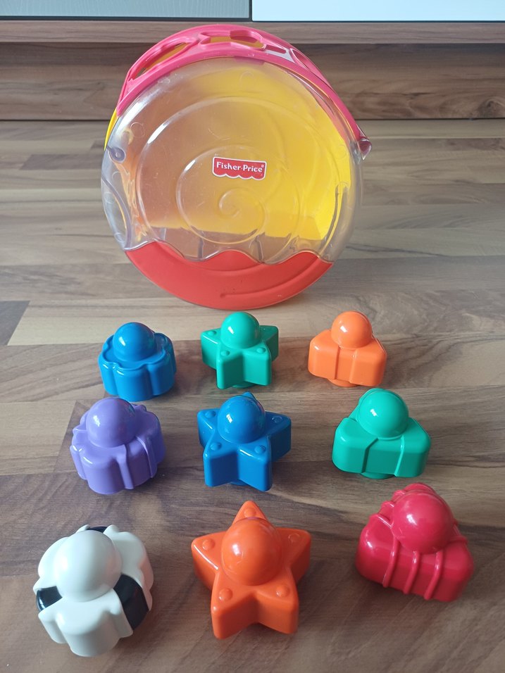 Fisher Price çok renkli eğitici oyuncak seti, yıldız ve çiçek şekilli parçalar ile şeffaf taşıma kutusuna sahiptir. Şekil tanımayı ve motor becerileri destekler.