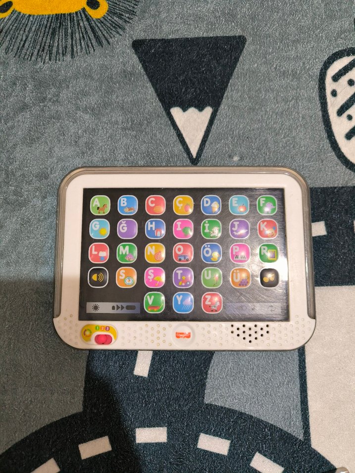 Fisher Price eğitim tableti, çok renkli alfabe tuşları ve sesli fonksiyonlarla çocukların harfleri öğrenmesine yardımcı olur. f k r müzik tuşları çalışmıyor.