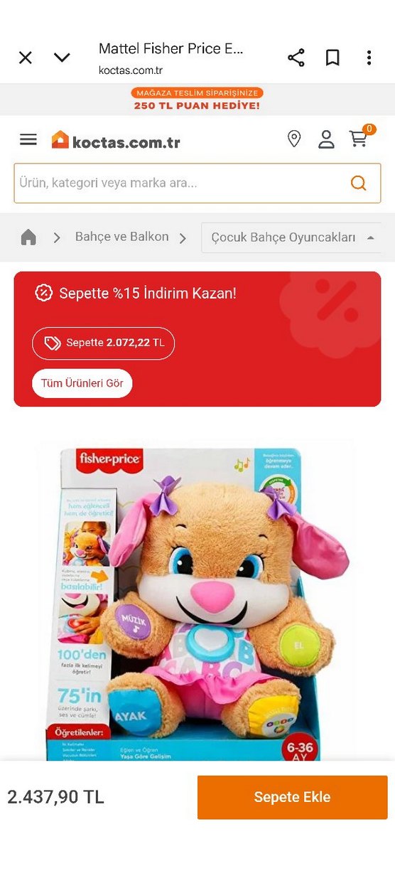 Fisher-Price Eğitici Peluş Köpek Oyuncak