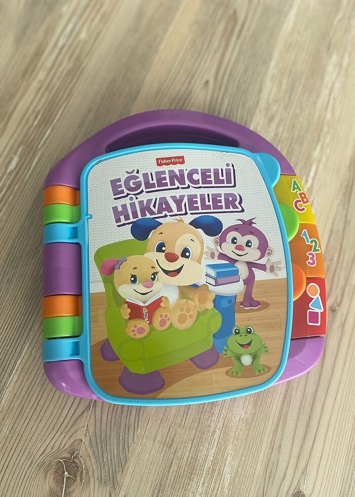 Ürün sıfır ayarındadır. Eğlen ve Öğren Eğitici Hikaye Kitabı ile en çok sevilen karakterler, bildiğiniz ve sevdiğiniz şarkılar ile bebeğinizi neşelendirir. "Kırmızı Balık" "Miniminnacık Örümcek" gibi sevilen şarkıları dinlemek için sayfaları çevirin. Bebeğiniz bu oyuncakla oynayıp şarkıları dinlerken sayı saymayı, temel kelimeleri, harfleri, rakamları, şekilleri ve çok daha fazlasını öğrenir. Kolay taşınabilen bir tutma kolu sayesinde, Eğitici Hikaye Kitabı'nı siz ve miniğiniz gittiğiniz her yere götürebilirsiniz! Erken gelişim için eğlenceli oyunlar Sayılar ve Harfler: Bebeğiniz ABC ve 123 düğmelerine bastığında, her sayfaya denk gelen ve onlara okumayı sevdiren harfleri ve sayıları duyacak! Renkler ve Şekiller: Bebeğiniz ışıklı Şekiller ve Renkler düğmesine bastığında, gördüğü farklı renkleri ve şekilleri ona öğreten cümleler duyacak!