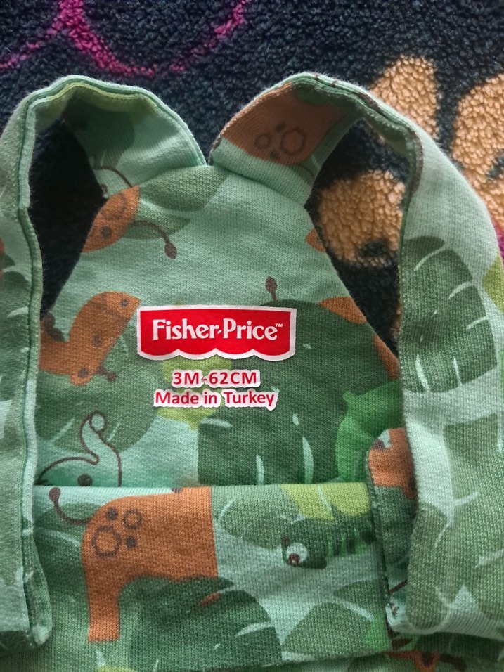Renkli yeşil desenli erkek çocuk3M-62CM ölçüsünde, Fisher-Price tarafından Türkiye'de üretilmiştir.