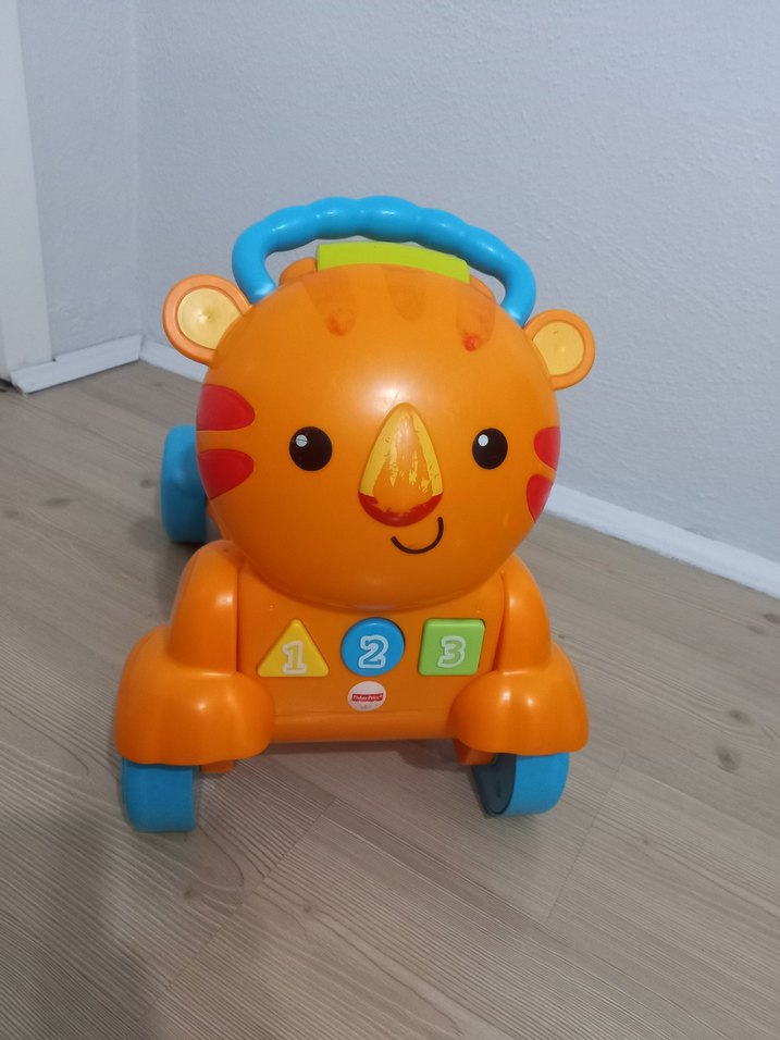 Fisher Price Konuşan Kaplan YürüteçBebeğinizin gelişimine uygun olarak kullanılabilen ve ince motor becerilerini geliştiren 2 ayrı modu bulunur. Yürüteç modunda, tutma kolu bebeğinizin ayakta durmasına yardım eder ve dengesini kurmasını sağlar. Geniş tekerlekleri sayesinde bebeğiniz ilk adımlarını güvenle atar. Bebeğiniz kaplanı kullanmaya hazır olduğunda, yürüteç kolayca bebeğinizin üzerine binip onu sürebileceği şekilde değiştirebilir. Bebeğinizim hareketleri (yürümesi, üzerine binip sürmesi veya kaplanın kafasındaki düğmelere basması gibi) sesler, müzik ve ilk kelimeler ile ödüllendirilir. Böylece bebeğiniz hareket etmeye ve oyun oynamaya teşvik edilir. 3 büyük buton hem Türkçe hem de İngilizce olarak renkleri, şekilleri ve rakamları öğretir. 9 ay ve üzeri bebekler için kullanıma uygundur.