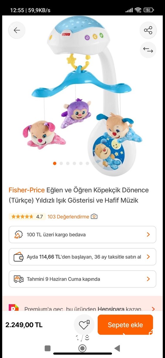 Ürün doktor tavsiyesiyle alındı bebeklerin gelişimi için önerildi faydasını gördük , iyi durumda sadece bağlama yerindeki ipte çok ufak bi deforme mevcut ama bağlamaya engel değil hak geçmesin diye bilgi vermek istedim Fisher-Price dönence, oyuncu köpek figürleri, yıldızlı ışık gösterisi ve hafif Türkçe müzik ile bebekleri eğlendirir ve rahatlatır.