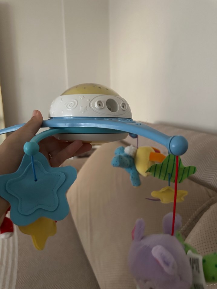 Yumuşak asılı peluş hayvanlar ve ışıklı yıldız içeren mavi müzikli bebek oyuncağıdır. Bebekleri eğlendirmek ve sakinleştirmek için melodiler çalar.