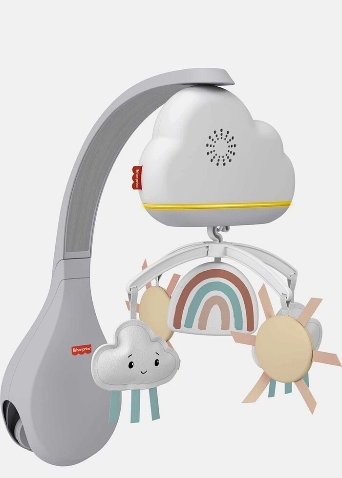Fisher-Price Mutlu Gökyüzü Dönence'nin bulut ve güneş şeklindeki asılabilen oyuncakları ve içerdiği 20 dakikalık çalma listesi, bebeğinizin rahatlayarak tatlı düşlere dalmasına yardımcı olur. Bu dönencede, fısıltı kadar sessiz bir motor, ve bebek uyandığında sakinleştirici dönence hareketini otomatik olarak yeniden başlatan kullanışlı bir ses algılama özelliği bulunur. Çoğu beşik, yatak yanı ve park yatakla uyumludur. Ben ikinci fotoğrafta bulunan beyaz beşikte sorunsuz kullandım. Ayrıca bu ürünü satın aldığımda 6.fotoğrafta görüldüğü üzere plastiğinde nokta kadar zede mevcuttu, iade etmedim. Ürünüm temiz kullanılmış olup hiçbir parçasında sorun yoktur. Dilerim ki; gideceği evdeki bebişe huzurlu uykular getirsin.
