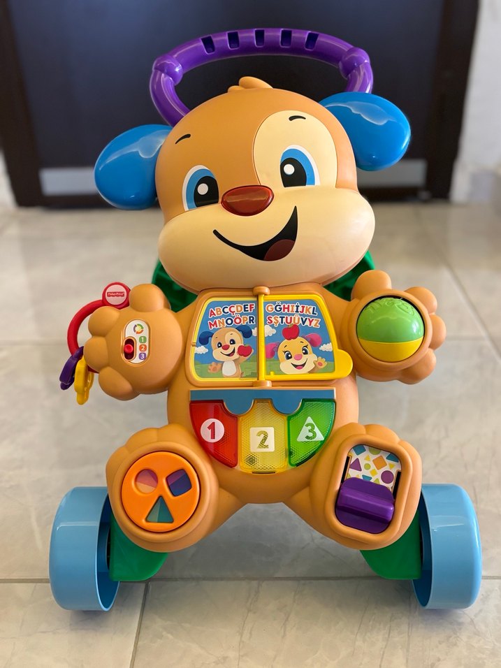 Aldığımız fiyatı görsele de ekledim ebebekte 3350 tl hiç bir kırığı çıkığı eksiği gidiği yok çok ama çok az kullanıldı zaten fotoğraftan anlarsınız tüm fonksiyonları çalışıyor isteyenlere watsapptan video atabilirim yada ebebeğin sitesinde tanıtım videosu var ordan bakabilirsiniz Renkli, köpek şeklinde eğitici yürüyüş oyuncağı. İnteraktif düğmeler, dönen parçalar ve küçük kitap içerir.