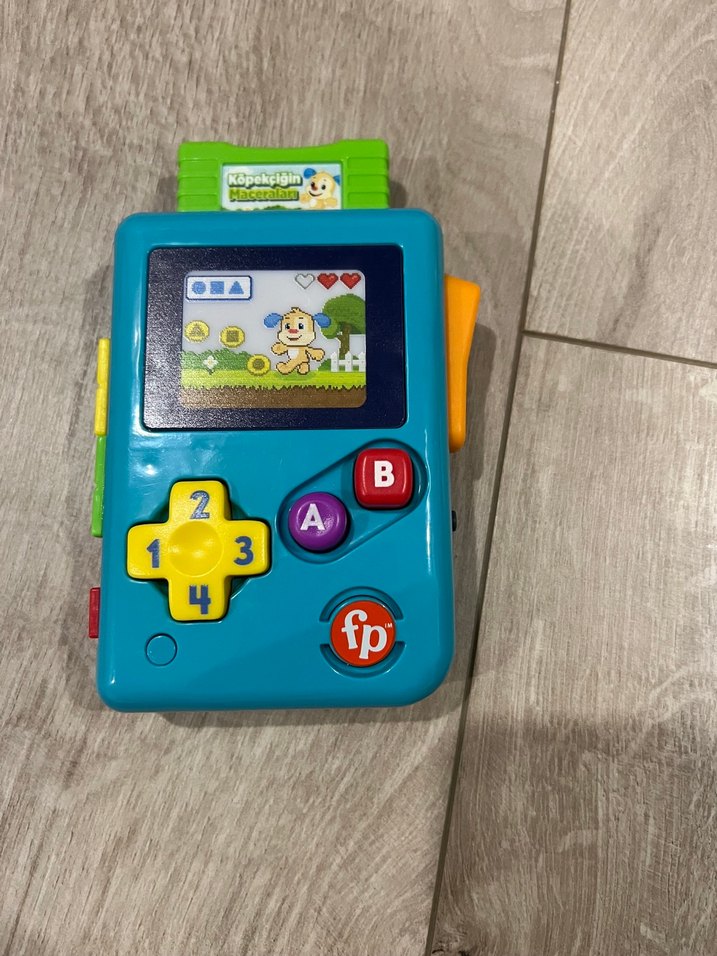 Renkli, interaktif düğmeli ve küçük ekranlı eğitici oyuncak. Üzerinde sayı ve harf tuşları bulunur.