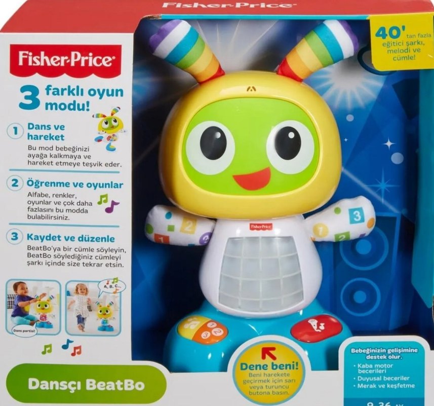 Fisher Price'ın renkli eğitim oyuncağı BeatBo, çocukları konuşmaya ve oyun oynamaya teşvik eder. Hareket ve cümle tekrar butonları bulunur.