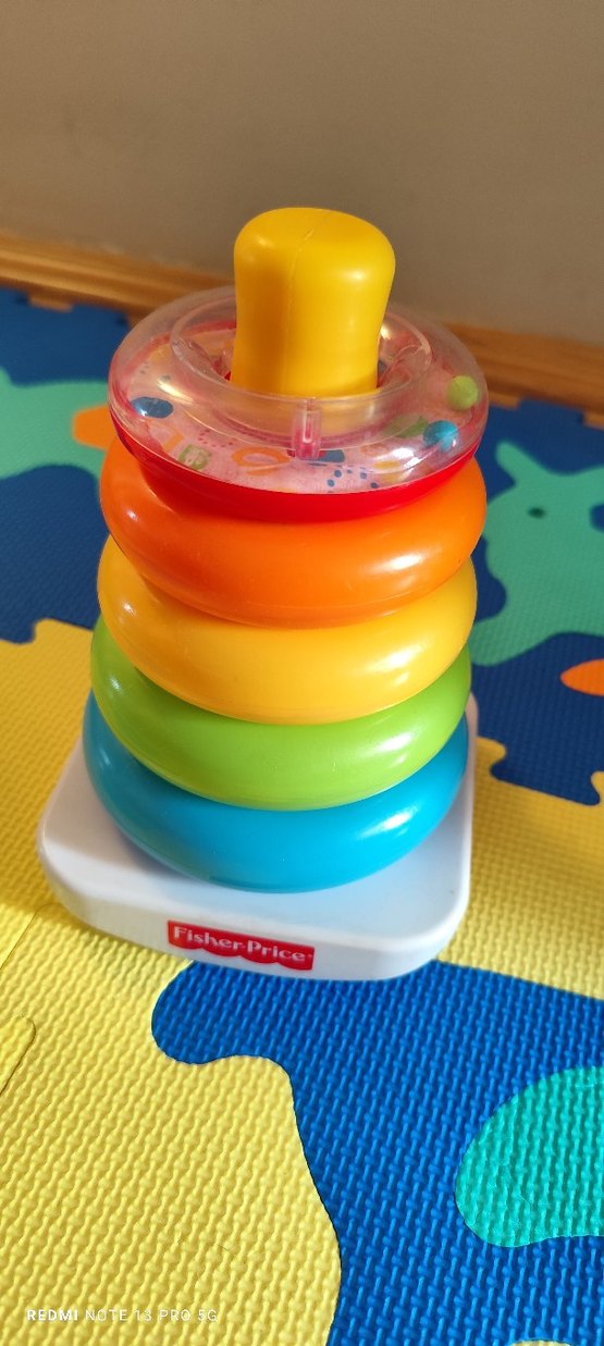 Fisher-Price renkli halka dizme oyuncağı, motor becerileri ve el-göz koordinasyonunu geliştirmek için farklı boyut ve renkte halkalar içerir. Tertemiz sıfırdan farksızdır.