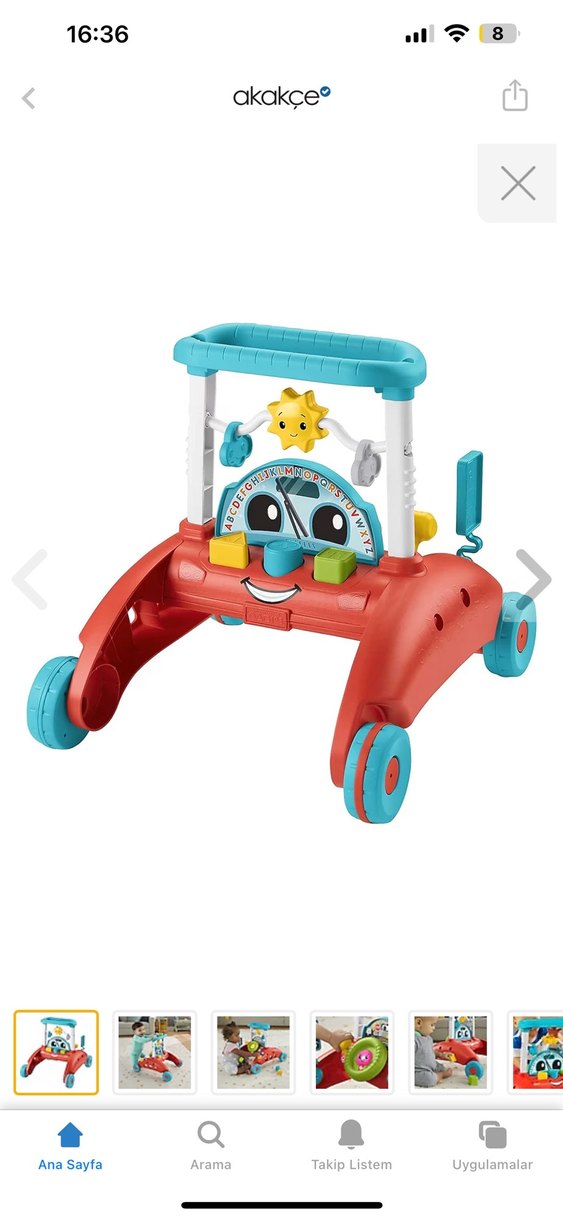 Tertemiz 2 ay kullanıldı, kutusuyla elden de alınabilir.Canlı kırmızı renkte, tekerlekli ve oyuncaklı bebek yürüteci, yürümeye yeni başlayanlar için destek sağlar.