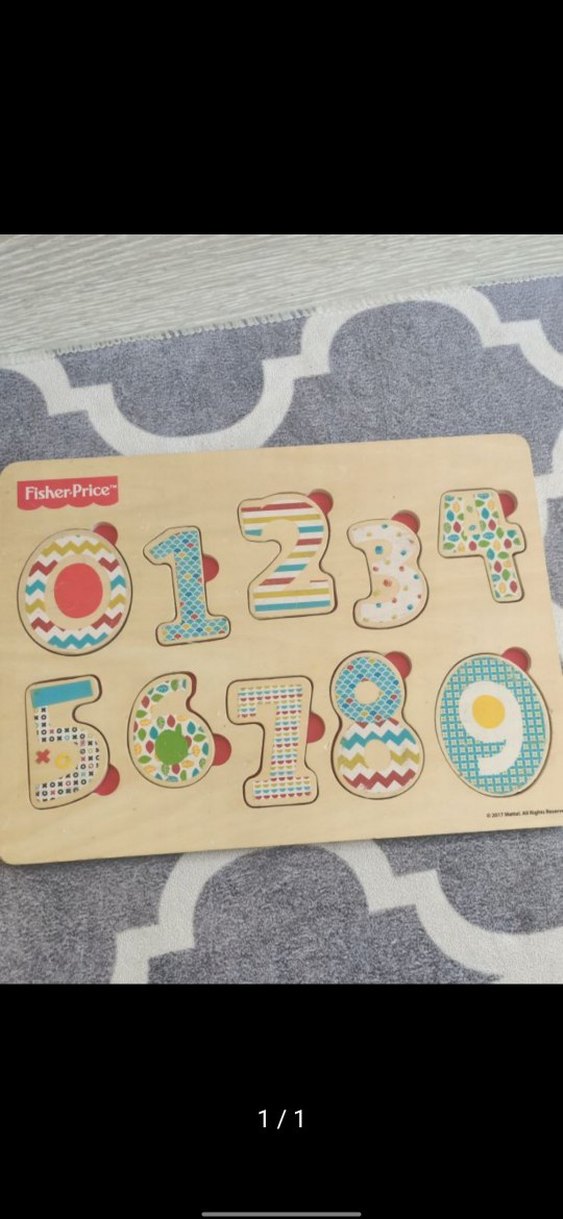 Fisher-Price renkli ahşap sayılar içeren, çocukların sayı saymayı ve tanımayı öğrenmesine yardımcı olan eğitici oyuncak.