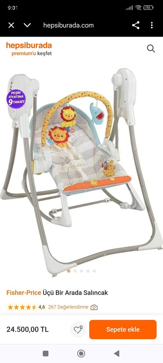 Fisher-Price üçü bir arada bebek salıncağı, renkli hayvan desenleri ve güvenli kemerle rahat bir oturma sağlar. Sallanma, yaslanma ve oturma fonksiyonlarını birleştirir. bir çok müzik ve saallama kademesi kutusu duruyor