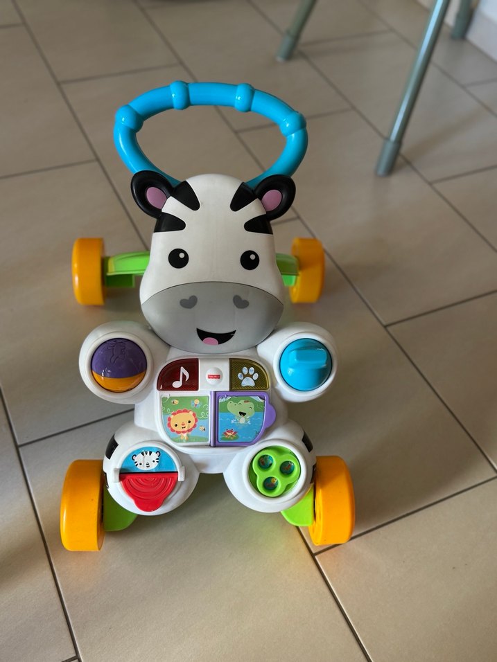 Renkli zebra tasarımlı bebek yürüteci, interaktif düğmeler ve tekerleklerle erken yürüme desteği sağlar.Seslidir sorunsuz
