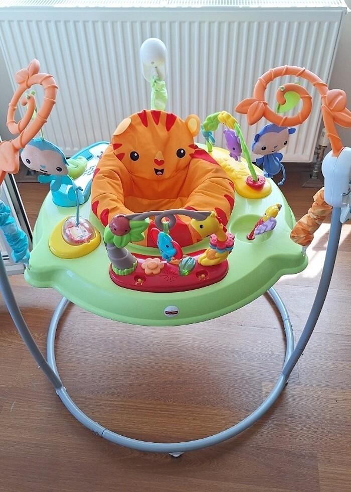 Fisher Price Yağmur Ormanı Jumperoo CHM91. Bir kaç defa ev içinde kullanıldı. Yepyeni, hiç bir hasarı yoktur. Işıklı, müzikli, koltugu manuel dönen bir oyuncak. Urun detaylari internetten kolaylikla bulunabilir. Anneler mesgulken bebegin hem eglenip hem de kesfedebilecegi haarika bir oyuncak.