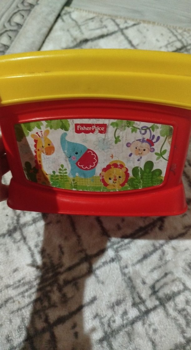 FisherPrice markalı, kırmızı ve sarı renklerde, hayvan figürlü renkli eğitim oyuncağıdır.