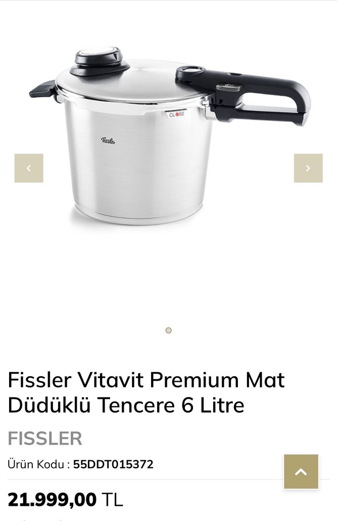 Mat yüzeyli Fissler Vitavit Premium düdüklü tencere 6 litre hacme sahiptir. Güvenli kilitleme ve kullanışlı saplara sahiptir. Sıfır kutulu ürün Güvenlik nedeni ile iade kabul etmiyorum!!!