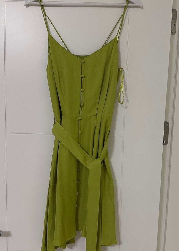 İp askılı düğmeleri süs düğme, kemerli, yandan fermuarlı İpekyol elbise