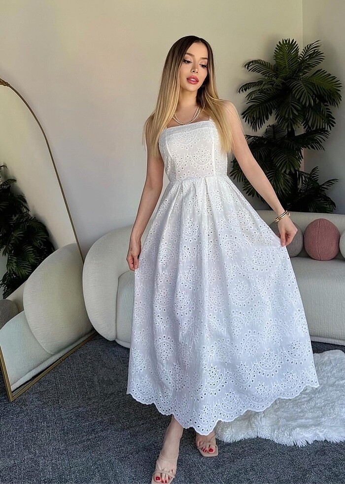 Fisto beyaz elbise Bir kez çekim için giyildi