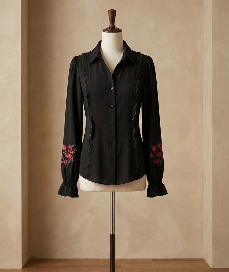 Fisto Detaylı Nakış İşlemeli Gömlek