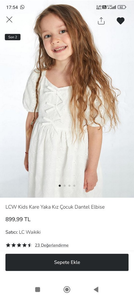 Pamuklu beyaz elbise, V yakalı ve kısa kollu, dantel detaylıdır. fisto elbise 7-8 yaş 1-3 defa giyildi tertemiz