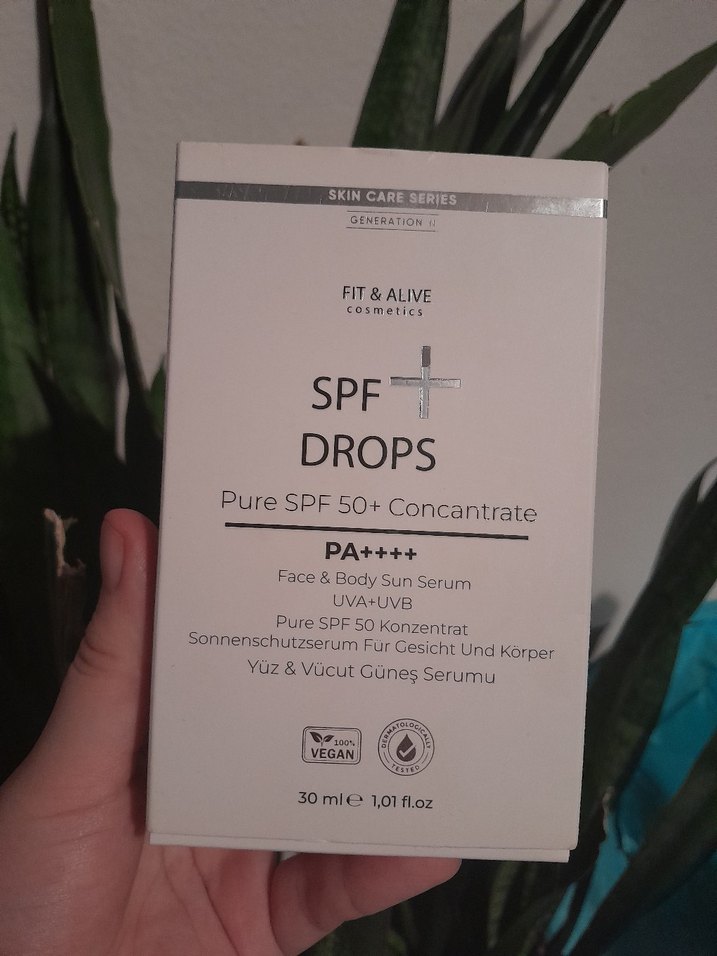 Fit & Alive Pure SPF 50+ Konsantre damlalar, yüz ve vücut için yüksek UVA ve UVB koruması sağlar. Vegan formüllü, PA++++ dereceli 30 ml serum. ☀️