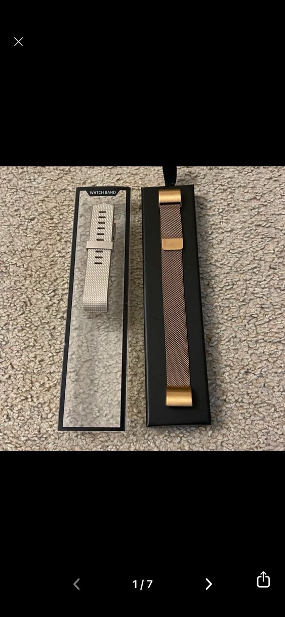 Farklı stillerde iki bej akıllı saat kayışı, biri yumuşak dokulu diğeri metalik örgü tasarımlı. Ayarlanabilir yapıya sahip. ⌚