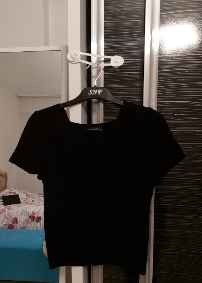 Hiç giymedm yeni aldım sayılır hiçbir hasarı yoktur Kare yakadır daha fazla detay isterseniz mesajla fotograf atabilirim