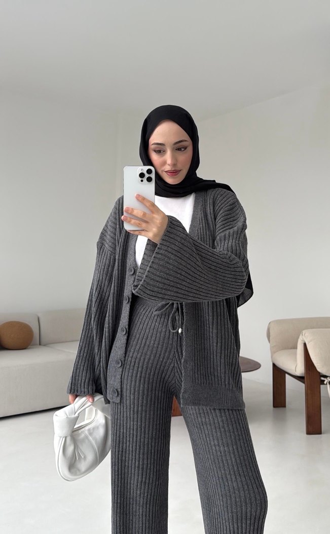 Fitilli gri triko takım