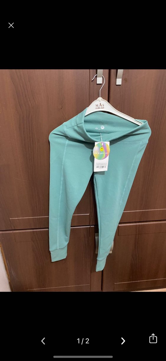 Turkuaz renkli, baskılı, yumuşak kumaştan hamile eşofman altı. Midi boy ve bol kesim, spor ve sokak stilinde şık ve rahat bir görünüm sunar. Marka: MAS.