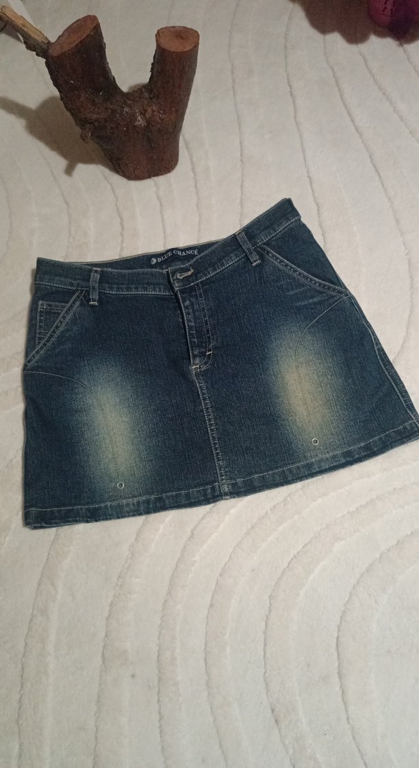 Fitted Mavi Denim Mini Etek (bir çıtçıt koptu ve ön düğmesi yok)