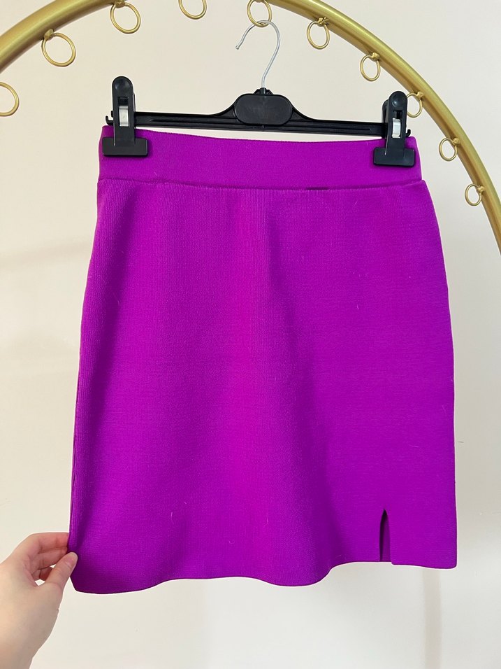 Fitted Yırtmaçlı Mor Triko Mini Etek Defacto marka M beden