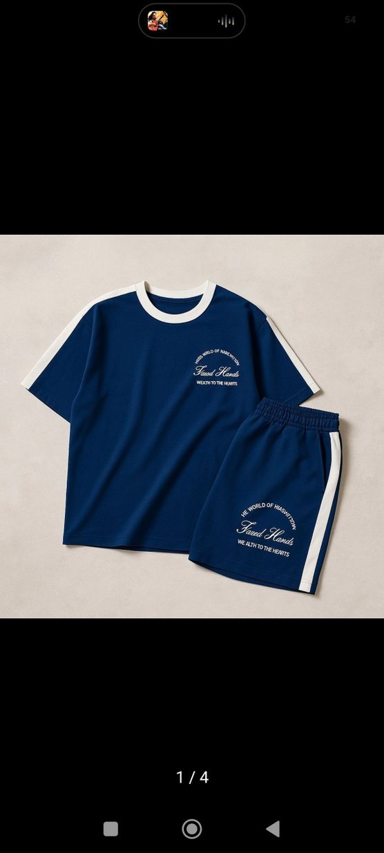 Lacivert renkli, pamuklu, baskılı kısa kollu erkek tişörtü. Salaş kesim ve yuvarlak yaka, beyaz yan şeritlerle sokak stiline uygun. Her bedeni mevcut ve hiç kullanılmadı ,Takım şeklinde de satılır .