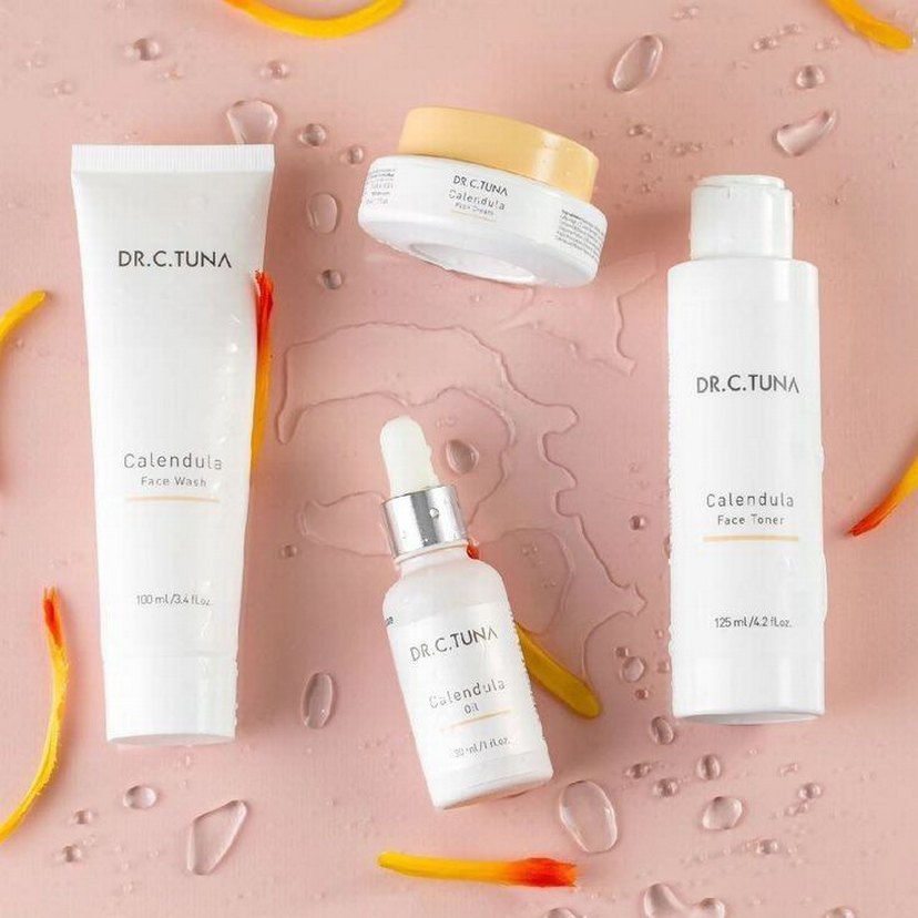 DR.C.TUNA Calendula yüz yıkama, tonik, yağ ve krem içeren cilt bakım seti, yüzü nazikçe temizleyip besler. ürün indirimi ve kampanyalar için takipte kalın ürünler fabrika çıkışlı paketli orjinal üründür
