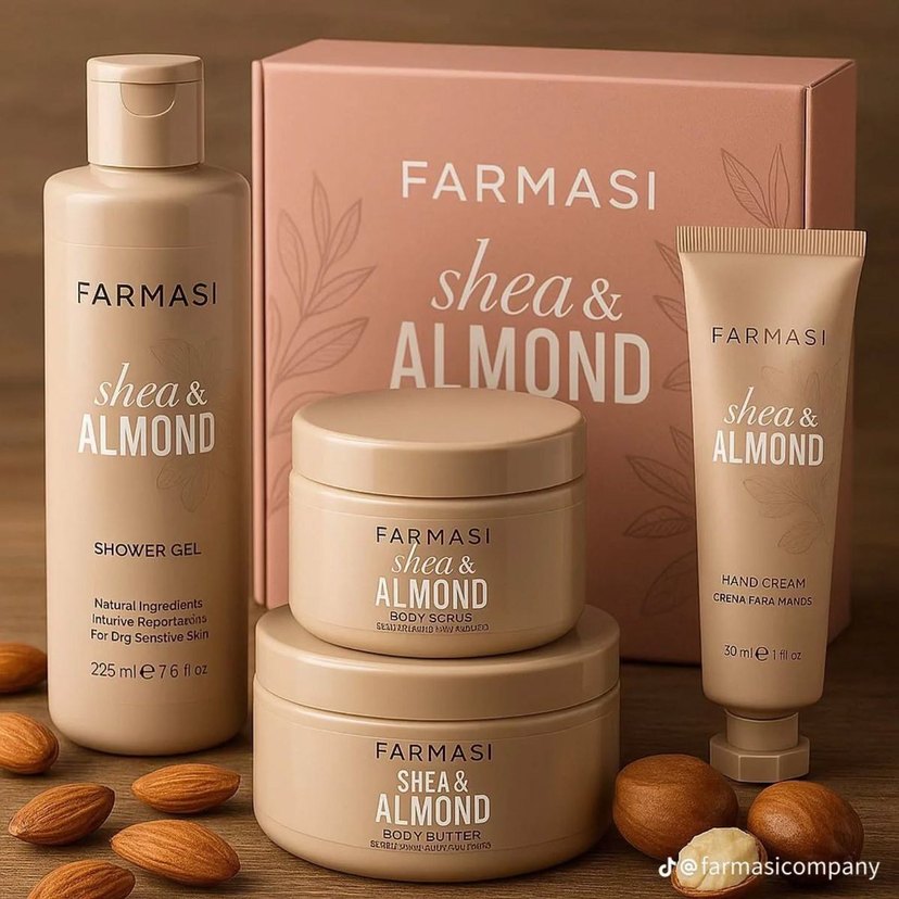 Farmasi Shea & Almond vücut bakım seti, shea ve badem özleriyle zenginleştirilmiş vücut yağı, vücut peelingi ve el kremi içerir. ürün indirimi ve kampanyalar için takipte kalın ürünler fabrika çıkışlı paketli orjinal üründür