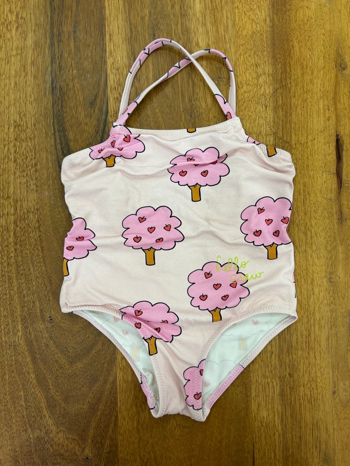 Pembe ve pastel pamuk şeker desenli, askılı kız çocuk mayo, plaj ve günlük kullanıma uygun. Uzaktan çekilen fotoğrafta görünen lekedir belli belirsiz. Yakın hali çok koyu gibi duruyor ama öyle değil. Leke çokarıcı kullanmadım lekesi çıkabilir.