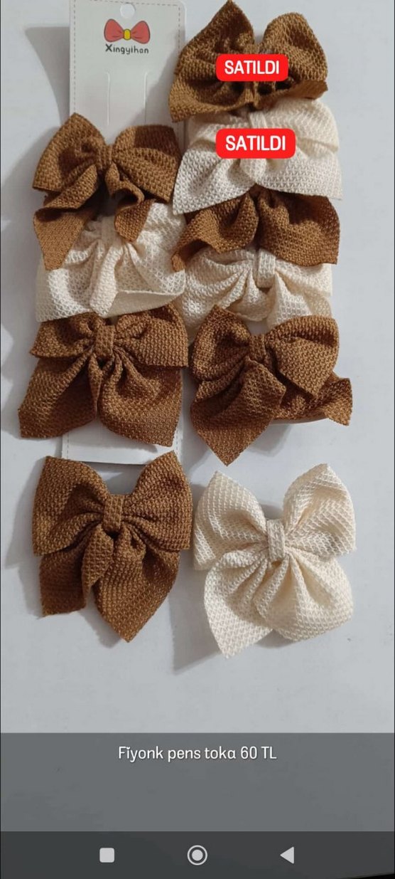Açık kahverengi ve krem renkli Fiyonk pens toka 60 TL