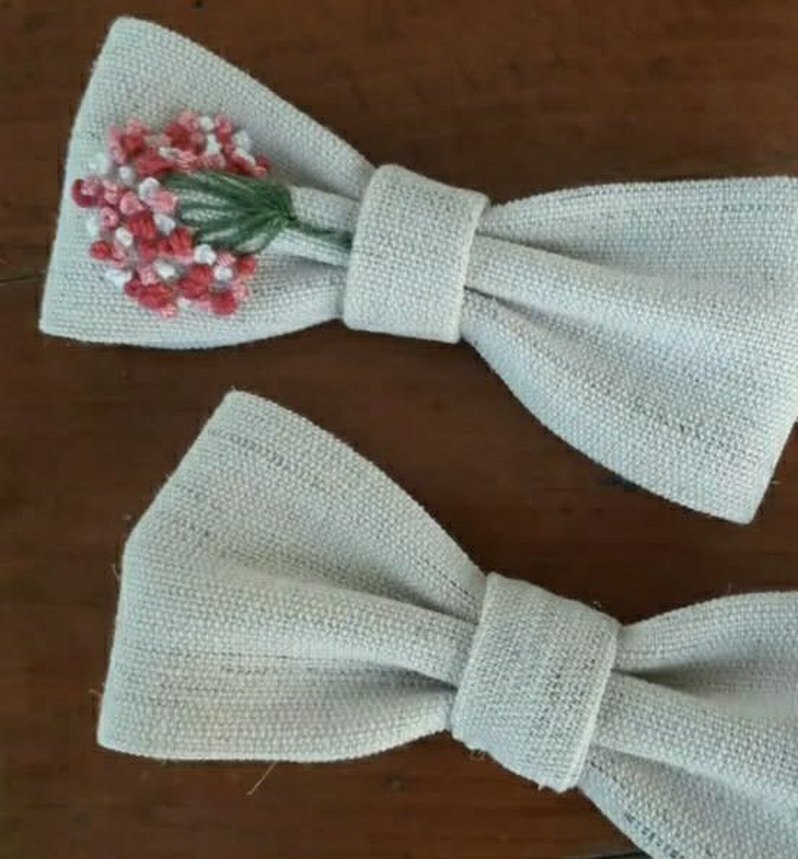 El emeği keten kumaşa rokoko işlemeli fiyonk toka