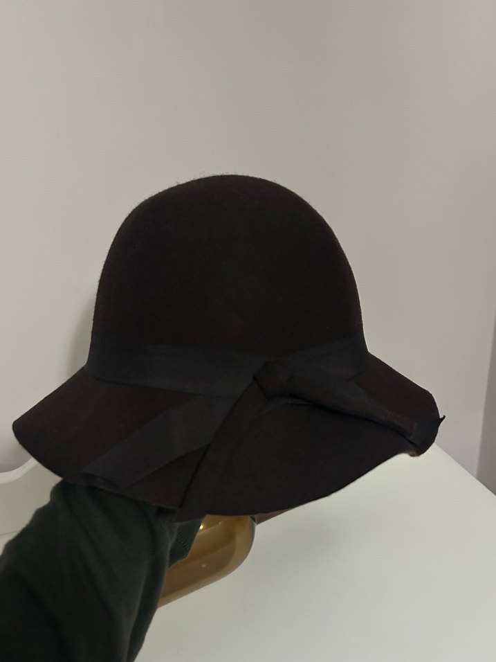 Yumuşak ve sıcak yün kumaştan yapılmış, fiyonk detaylı acı kahve kadın şapkası, geniş kenarlıklıdır. Sadece 2 kez kullanıldı herhangi bir sıkıntısı yok tertemiz fotoğraftaki gibidir.