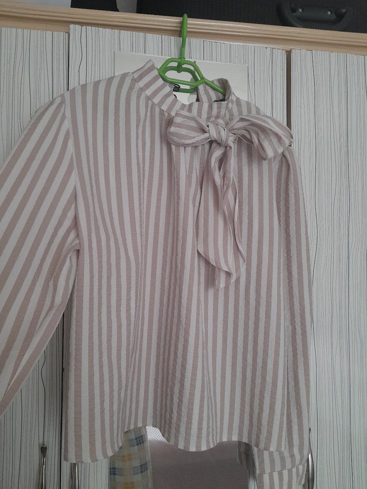 Fiyonklu Bej Kadın Keten Gömlek
