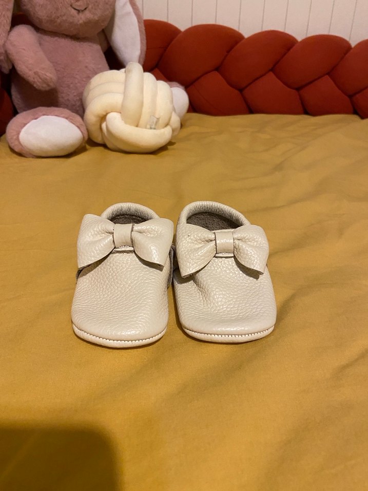 Yumuşak beyaz renkli kız bebek ilk adım ayakkabısı, fiyonk detaylı ve esnek kauçuk malzemeden üretilmiştir. Düz ve desensiz tasarım.kız bebek ayakkabısı temiz defosuz ve lekesizdir 19numara markası hodore trendyol da mevcut çok az giyildi