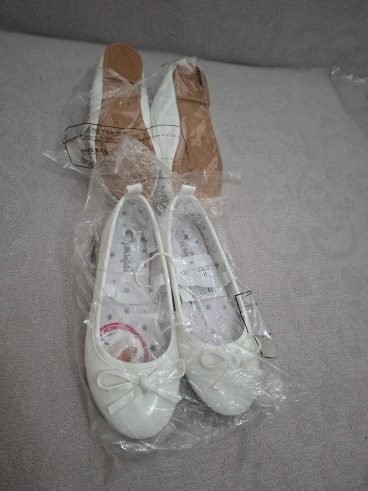 Fiyonklu Beyaz Kız Çocuk Rugan Babet 31 numara sıfır etiketli