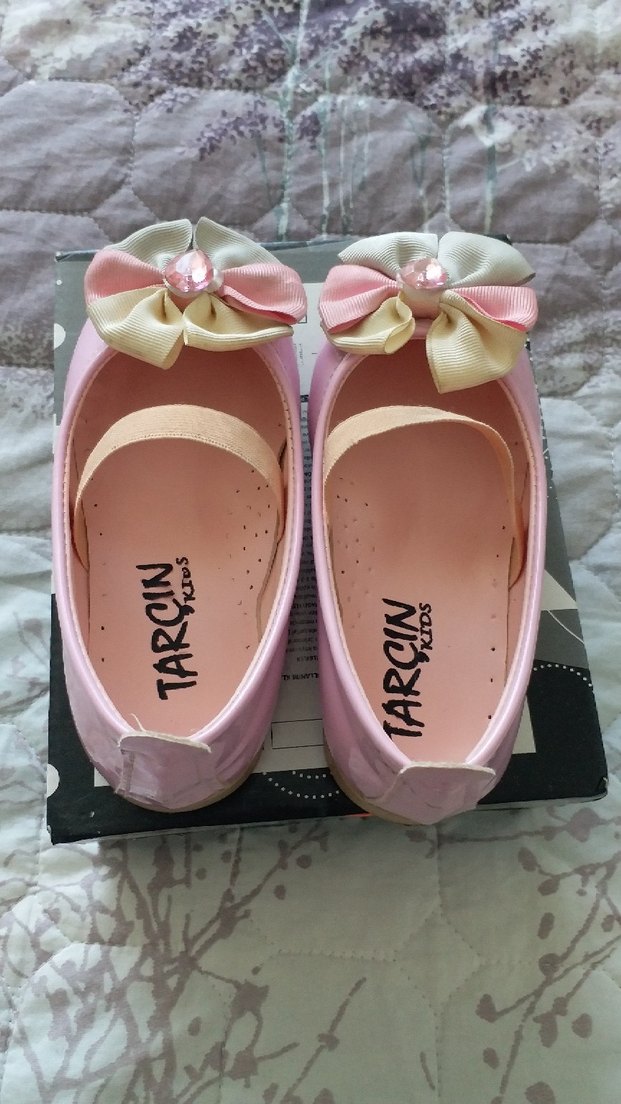 Yumuşak kauçuk malzemeden yapılmış, baskılı detaylara ve taşlı fiyonk süslemelere sahip pastel pembe kız çocuk babeti. Rahat ve şık.hasinin düğünün de giydi 2 saatlik sadece