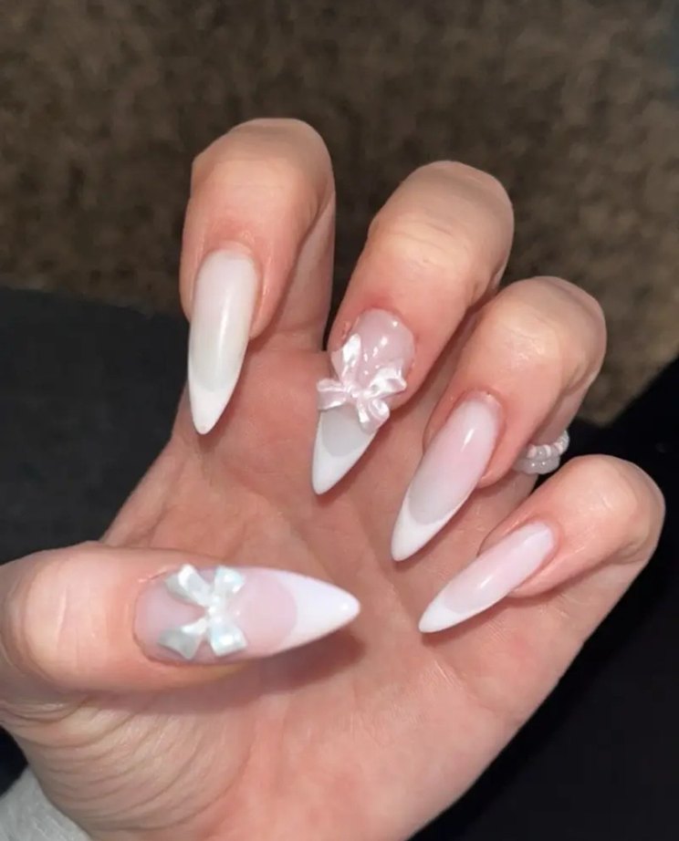 Zarif fiyonk detaylı pastel tırnak süslemeleri. ✨ Toplam 20 adet pembe, beyaz ve şeffaf olarak karisik gonderilecektir. Iade yoktur. Marka temsili.