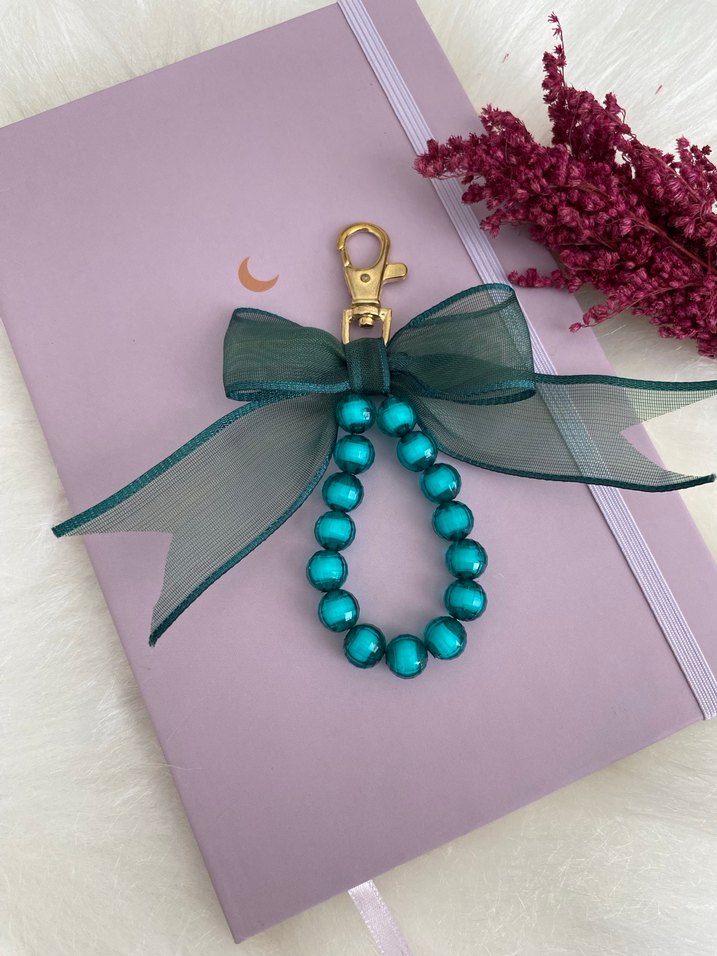Yeşil boncuklar ve şeffaf fiyonk detaylı bohem tarzı anahtarlık, renkli bir dokunuş sağlar toplu alımlarda indirim yapılır. Hediyelik özel günlerinize güzel hatıralar bırakın. #anahtarlık #fiyonk #kurdele #charm #boncuk