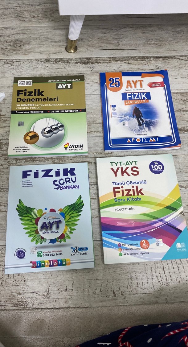 HİÇ KULLANILMAMIŞ AYT Fizik denemeleri ve soru kitaplarından oluşan set, YKS ve TYT-AYT hazırlık için uygundur.