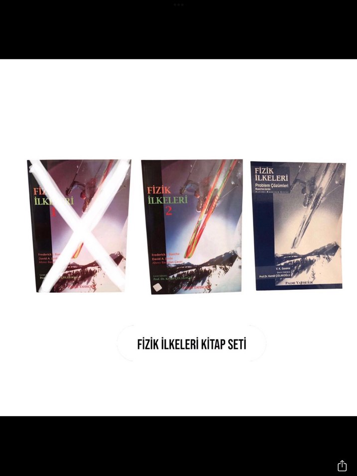Fizik ilkeleri üzerine ders kitapları ve problem çözümlerinden oluşan set, hiç kullanılmamış, üniversite seviyesine uygundur. Frederick Bueche-David Jarde. 6.baskıdan çeviri. Palme yayıncılık. 2000 basımı. 1.cilt SATILDI. 2.kitap: ekler hariç 905 sayfa. Beyaz kağıda baskı. Bandrollü, orijinal. Ek kitap: Problem çözümleri kitabı. 226 sayfa. Beyaz kağıda baskı. Bandrollü, orijinal.
