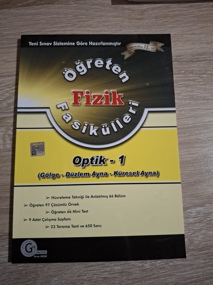 Fizik Optik-1 kitabı, gölge, düzlem ayna ve küresel ayna konularını içerir. 23 tarama testi ve 650 soru içerir.